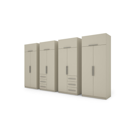 Комплектът се състои от четири отделни сегмента, които заедно създават просторен гардероб. При необходимост гардеробите могат да бъдат инсталирани отделно. Всеки сегмент се отличава с различна функционалност и предназначение, а комбинирането им дава изключително вместителен комплект с място за буквално всичко!