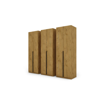 Гардеробът с 6 врати с размери 240x240 см в декор дъб Ланселот е предложение за хора, които ценят естественото покритие в модерна версия. Топлият, дървесен нюанс в комбинация с черните дръжки създава елегантен контраст, който се вписва перфектно в лофт, индустриални и модерни интериори.
