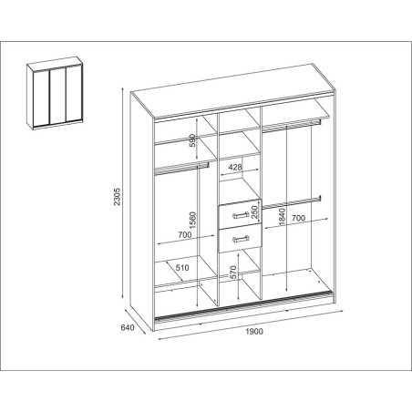 Гардероб 3D/190 - лостове за закачалки, две чекмеджета, полици