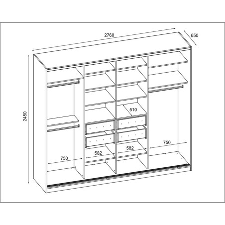 Гардероб 4D/276 - лостове за закачалки, изтеглящи се рафтове, чекмеджета, голям брой рафтове