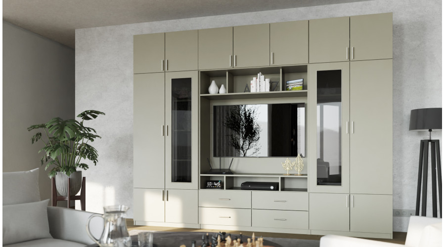 Мебелна стена ВЕРО – модерна мебелна стена, която се адаптира към вашите нужди.