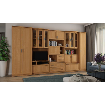 При избора на стенка с вместителни чекмеджета, бар и гардероб, не забравяйте да я съобразите със стила и цветовете на интериора. Налични са различни цветове на фронтовете, които ще ви позволят перфектно да аранжирате хола си.