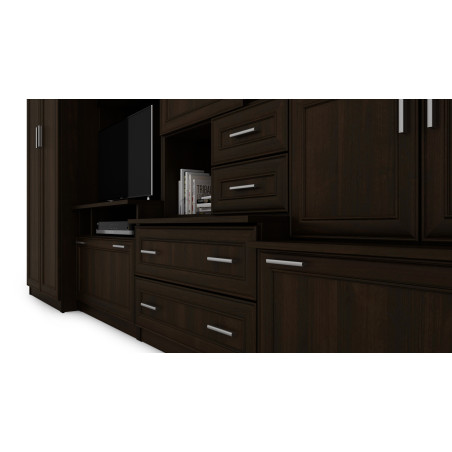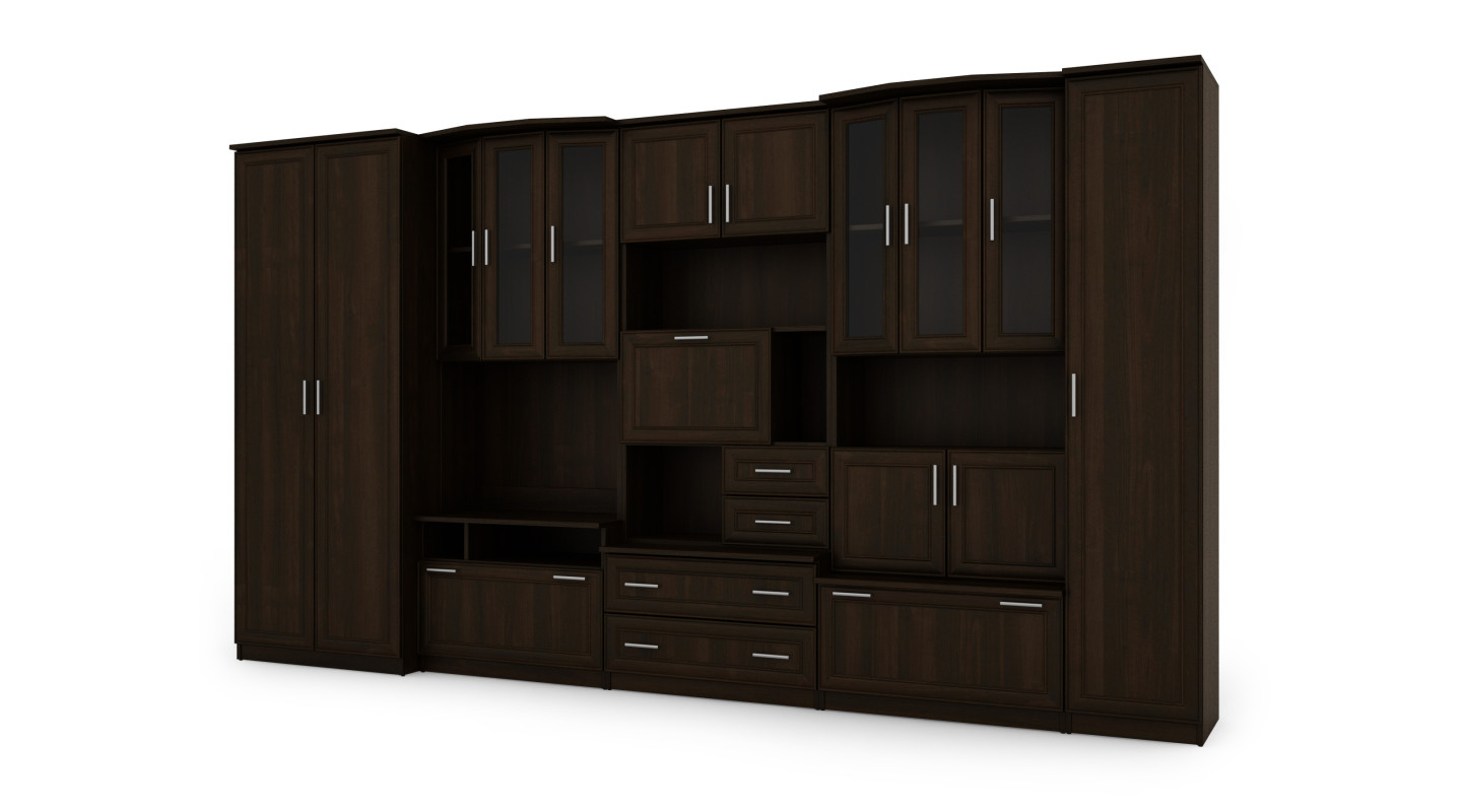 При избора на стенка с вместителни чекмеджета, бар и гардероб, не забравяйте да я съобразите със стила и цветовете на интериора. Налични са различни цветове на фронтовете, които ще ви позволят перфектно да аранжирате хола си.