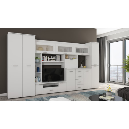 Търсите модерна мебелна стенка, която ще побере всички ваши вещи? Изберете нашата елегантна мебелна стенка КЕНА с гардероб, рафтове, чекмеджета и RTV пространство, която съчетава функционалност и естетика в едно. Тя осигурява много място за съхранение, удобни решения за показване на мултимедийно оборудване и уникални предмети като снимки, книги или елегантни стъклени изделия.
