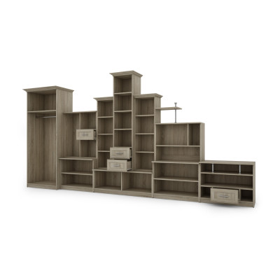 Благодарение на възможностите за съхранение ще имате всичко под ръка, като същевременно поддържате ред в хола. Големият гардероб ще ви позволи да скриете предмети, които не искате задължително да са на видно място, като същевременно осигурява лесен достъп, когато ви трябват. Независимо дали предпочитате класически, селски или модерен стил, стенката с гардероб е налична в различни цветове, за да съответства на вашия вкус и интериорен дизайн.