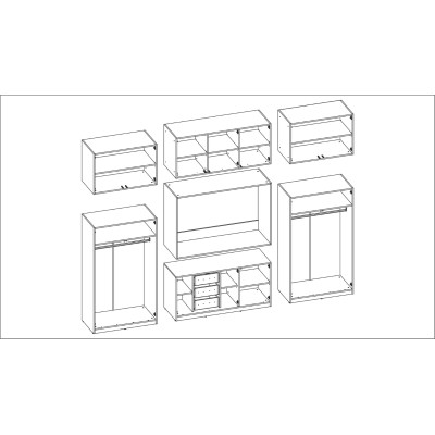 - затварящи се надстройки с рафтове по цялата ширина на комплекта, благодарение на които общата височина на мебелната стенка е цели 240 см.