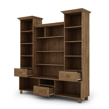 - Основата на витрината се състои от високи, елегантни, декоративни профилирани MDF крака в цвета на целия комплект.