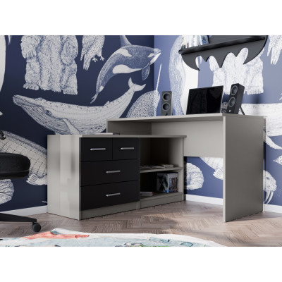 Rohový psací stůl má prostorné pracovní plochy. Zásuvky a police pojmou všechny potřebné doplňky. Náš psací stůl se skvěle hodí jak do kanceláře, dětského pokoje, pokoje pro mládež, pracovny, nebo dokonce do ložnice jako toaletní stolek. Bez rizika jej můžete naplnit potřebnými předměty. Při správném používání poslouží domácnosti mnoho let.