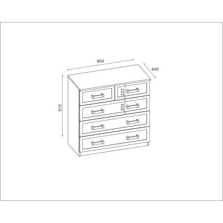 Došlo vám místo na ukládání oblečení? Vyberte si komodu 90 od e-Meblast, která se dokonale hodí do klasických i moderních interiérů. Komoda 90 skvěle doplní výzdobu obývacího pokoje, salonu či ložnice. Tato funkční a prostorná kompozice vybavená pěti různě velkými zásuvkami umožňuje pohodlné třídění částí šatníku a nejen to.