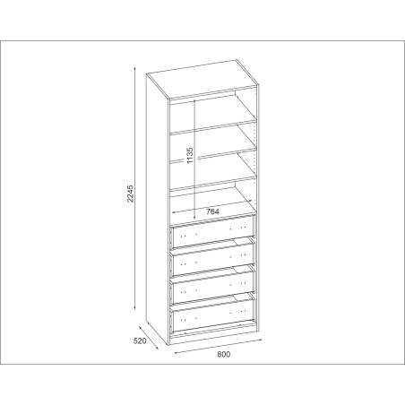 Modulární skříň 80x225 cm s policemi a zásuvkami – System MAX Premium