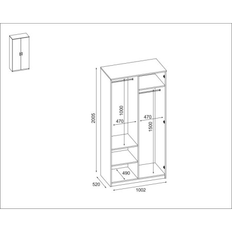 Skříň 100 - tyče na ramínka, police