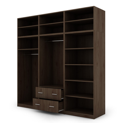Nábytek tvoří pevná konstrukce, která poskytuje spoustu úložného prostoru. Vnitřek skříně skrývá velký počet polic, díky kterým můžete třídit svetry a kalhoty. Velkým přínosem jsou prostorné zásuvky, které budou perfektním místem pro drobné kusy oblečení nebo doplňky. Ve skříni najdete také tyče na ramínka, kde dokonale pověsíte kabáty, bundy, saka nebo šaty.