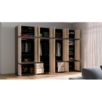 Kromě toho skříň má nástavce, které ještě více zvyšují její kapacitu. To je ideální řešení pro osoby s mnoha oblečením nebo jinými předměty a potřebující další úložný prostor.
