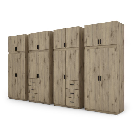 Hledáte velmi prostornou skříň, která vám umožní udržet pořádek mezi prvky šatníku celé vaší rodiny? Vyberte si skříň 380/240, kterou můžete rozdělit na segmenty. Prostory byly vybaveny kovovými tyčemi na ramínka a vysokými policemi, které usnadňují ukládání oblečení, navíc nástavci, které pojmou méně používané věci. Díky prostorným zásuvkám snadno najdete každou hledanou věc.