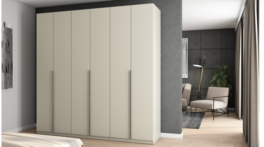 6dveřový model v kašmírové béžové barvě se skvěle hodí do ložnice, předsíně, šatny nebo pokoje mladých. Je to univerzální volba pro interiéry zařízené jak v klasickém, tak moderním stylu.