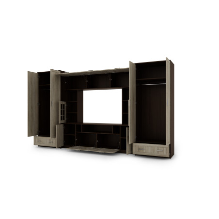 Hledáte opravdu velký a funkční kus nábytku do obývacího pokoje nebo obývací oblasti? Vyberte si obývací stěnu TAJGA, která se skládá ze dvou skříní, skříněk, polic a TV skříňky. To je perfektní řešení pro skladování oblečení, drobností a všech ostatních potřebných předmětů, stejně jako pro vystavení TV vybavení. Obývací stěna TAJGA poskytuje jak funkčnost, tak estetický vzhled.