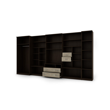 Nábytek se skládá z velké šatní skříně s tyčí, prádlové skříně s pěti policemi, skleněných vitrín, zásuvek, baru, otevřených výklenků a velkého výklenku pro televizor. Je to vynikající řešení pro osoby, které potřebují hodně místa pro ukládání různých předmětů, od oblečení po knihy, dekorace nebo elektronické vybavení. Obývací stěna LENA umožňuje udržet pořádek v místnosti a zároveň poskytuje snadný přístup k potřebným věcem.