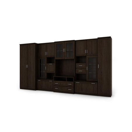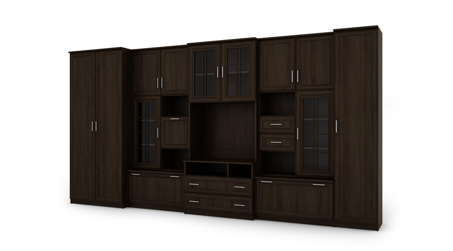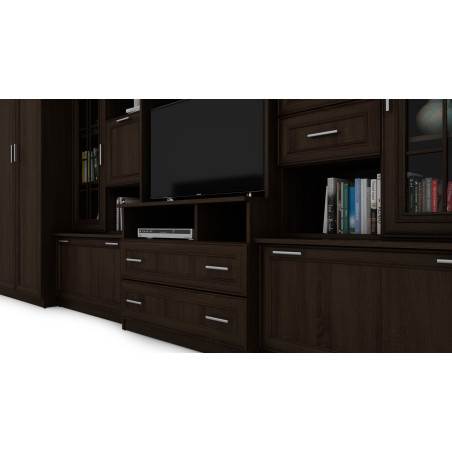 Nábytek se skládá z velké šatní skříně s tyčí, prádlové skříně s pěti policemi, skleněných vitrín, zásuvek, baru, otevřených výklenků a velkého výklenku pro televizor. Je to vynikající řešení pro osoby, které potřebují hodně místa pro ukládání různých předmětů, od oblečení po knihy, dekorace nebo elektronické vybavení. Obývací stěna LENA umožňuje udržet pořádek v místnosti a zároveň poskytuje snadný přístup k potřebným věcem.