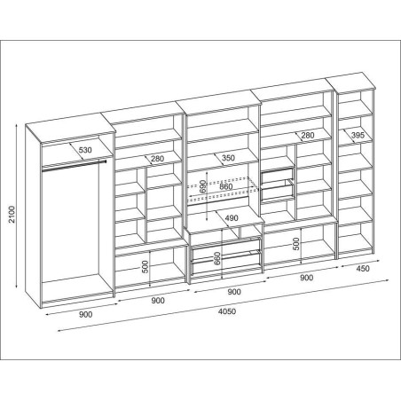 Nábytek se skládá z velké šatní skříně s tyčí, prádlové skříně s pěti policemi, skleněných vitrín, zásuvek, baru, otevřených výklenků a velkého výklenku pro televizor. Je to vynikající řešení pro osoby, které potřebují hodně místa pro ukládání různých předmětů, od oblečení po knihy, dekorace nebo elektronické vybavení. Obývací stěna LENA umožňuje udržet pořádek v místnosti a zároveň poskytuje snadný přístup k potřebným věcem.