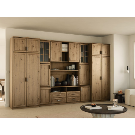 Díky své eleganci a solidní konstrukci je obývací stěna SAWA ideální pro tradičně zařízené obývací pokoje. Její klasický vzhled podtrhuje charakter zařízení. Použití vysoce kvalitních materiálů v barvě dřeva dodává místnosti teplo a útulnost.