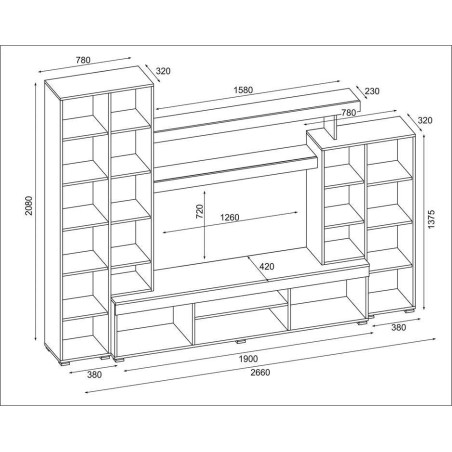 Zařiďte místnost obývací stěnou Apollo s nadčasovým vzhledem. Nábytek byl navržen pro ukládání a vystavování drobných předmětů nebo knih. Je to také dokonalé místo pro vystavování ozdob a suvenýrů.