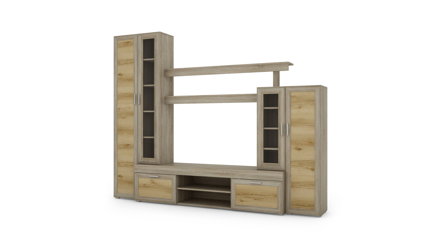 Zařiďte místnost obývací stěnou Apollo s nadčasovým vzhledem. Nábytek byl navržen pro ukládání a vystavování drobných předmětů nebo knih. Je to také dokonalé místo pro vystavování ozdob a suvenýrů.
