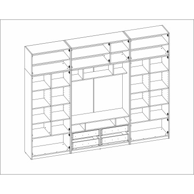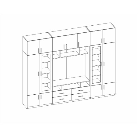 Toto je obývací stěna, která pojme opravdu hodně – za elegantními, uzavřenými čely skryjete všechny věci, které nemají být na očích. Prosklené vitríny vám umožní efektně vystavit oblíbené dekorace, a TV prostor byl promyšlen tak, aby pohodlně pojal televizi a multimediální zařízení.