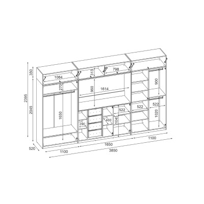 - uzavíracích nástavců s policemi po celé šířce sady, díky kterým je celková výška obývací stěny až 240 cm.