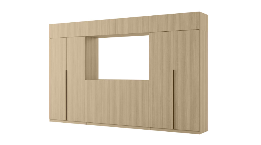 - uzavíracích nástavců s policemi po celé šířce sady, díky kterým je celková výška obývací stěny až 240 cm.
