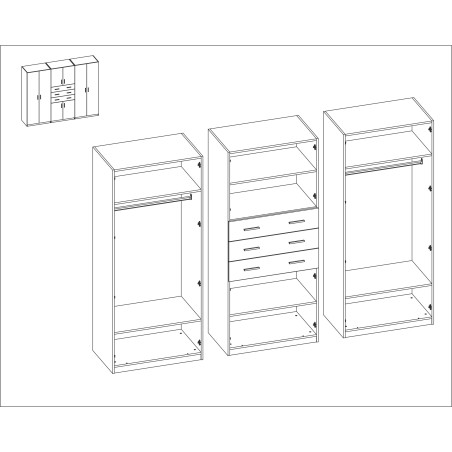 Kleiderschrank 270/210 - Kleiderstangen, Innenregale, Außenschubladen