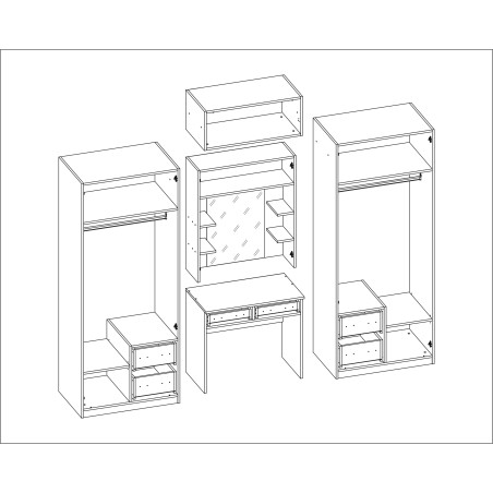Wenn Sie ein Fan von Möbeln sind, die ein attraktives Design haben, außergewöhnlich funktional sind und sich perfekt in moderne Innenräume verschiedener Einrichtungsstile einfügen – wird Ihnen der Kleiderschrank mit Drehtüren und Schminktisch sicherlich gefallen.