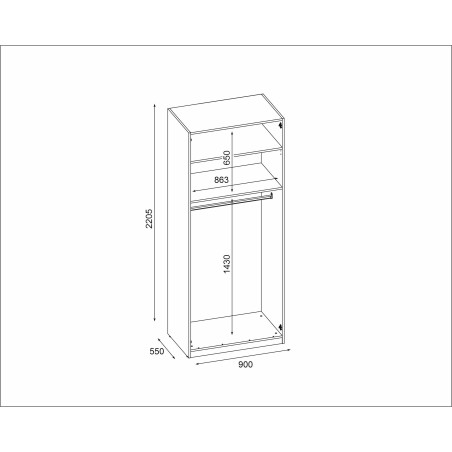 Schrank 90 mit Regalen und Kleiderstange
