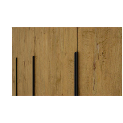 Der 6-türige Kleiderschrank mit den Maßen 240x240 cm im Dekor Lancelot-Eiche ist ein Vorschlag für Menschen, die natürliche Verarbeitung in moderner Ausführung schätzen. Der warme Holzton in Kombination mit schwarzen Griffen schafft einen eleganten Kontrast, der sich perfekt in Loft-, Industrie- und moderne Einrichtungen einfügt.