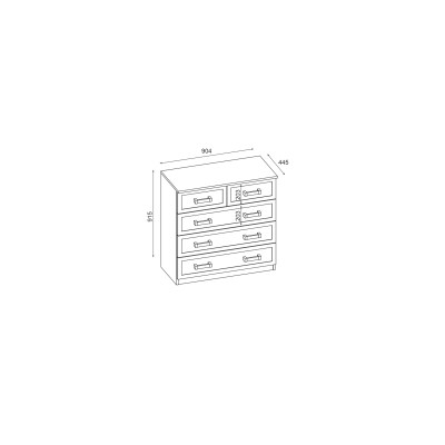 Ihnen fehlt Platz zur Aufbewahrung von Kleidung? Wählen Sie die Kommode 90 von e-Meblast, die sich perfekt in klassische und moderne Einrichtungen einfügt. Die Kommode 90 ergänzt hervorragend die Ausstattung von Wohnzimmer, Salon oder Schlafzimmer. Dieser funktionale und geräumige Körper ist mit fünf verschieden großen Schubladen ausgestattet und ermöglicht eine komfortable Sortierung von Kleidungsteilen und mehr.