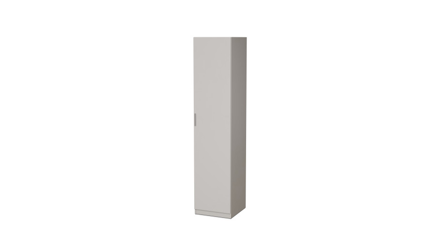 Im Inneren des Möbelstücks befindet sich eine praktische Kleiderstange für Bügel, die das ordentliche und leicht zugängliche Aufhängen von Jacken, Mänteln, Kleidern oder Hemden ermöglicht. Oberhalb und unterhalb der Stange befinden sich Regale, die sich hervorragend zur Aufbewahrung gefalteter Kleidung, Boxen oder Heimtextilien eignen. Diese Anordnung gewährleistet schnellen Zugang zu den am häufigsten verwendeten Gegenständen und fördert die Ordnung. Der Schrank ist im Premium-Standard gefertigt, was bedeutet, dass er mit Scharnieren mit Softclose-Funktion, Metallgriffen (zur Auswahl in drei Farben: schwarz, aluminium, gold) sowie Fronten und Korpus aus dauerhafter Möbelplatte ausgestattet wurde. Bei der Wahl dieses Schranks haben Sie auch die Möglichkeit zur farblichen Personalisierung, da jedes Segment des MAX-Systems in jeder verfügbaren Farbe des Angebots ausgeführt werden kann, was eine Anpassung des Möbels an die konkrete Inneneinrichtung ermöglicht.