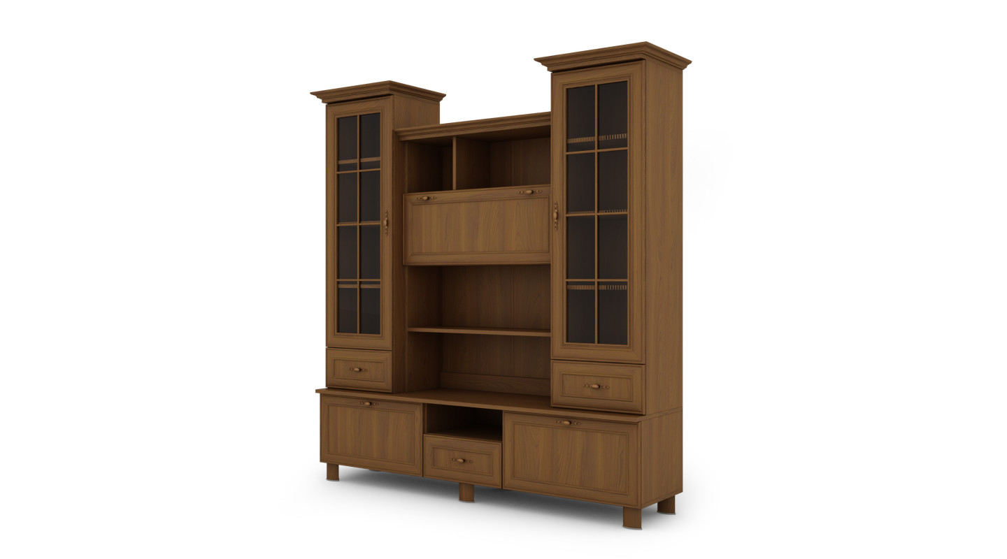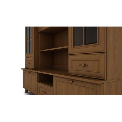 - Die Dekoration des gesamten Segments ist die Kranzleiste – MDF-Krone, also das Element, das die obere Platte der Vitrine verziert. Die Kranzleisten betonen den Stil und Charakter des Möbels.