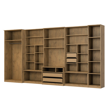 Die Wohnwand LENA ist ein praktisches und stilvolles Möbelstück für Personen, die ein einziges Möbel zur Aufbewahrung aller Gegenstände benötigen. Dank der gut konzipierten Elemente können Sie darin verschiedene Gegenstände aufbewahren, dekorative Elemente, Sammlungen oder geliebte Erinnerungsstücke zur Schau stellen und auch eine Multimedia-Ecke schaffen. So wird die Wohnwand nicht nur zum Unterhaltungszentrum und zur praktischen Lösung, sondern auch zum dekorativen Element, das dem gesamten Raum Charakter und Individualität verleiht.