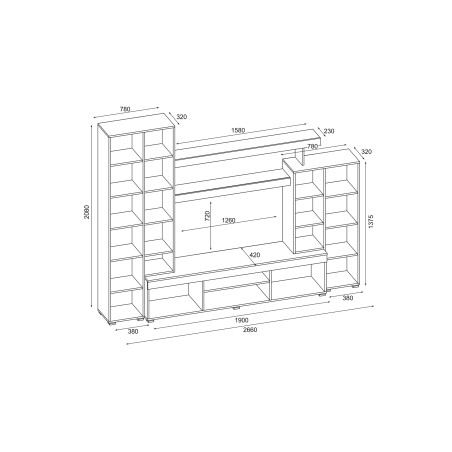 Gestalten Sie den Raum mit der Apollo Wohnwand in zeitlosem Design. Das Möbel wurde für die Aufbewahrung und Präsentation kleiner Gegenstände oder Bücher entworfen. Es ist auch der perfekte Ort zur Ausstellung von Schmuck und Erinnerungsstücken.