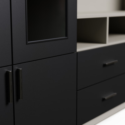 Investieren Sie in Qualität, Ästhetik und Komfort des täglichen Lebens. Wählen Sie Vero – eine Wohnwand, die durch ihr Aussehen begeistert und den Bedürfnissen des modernen Zuhauses entspricht.