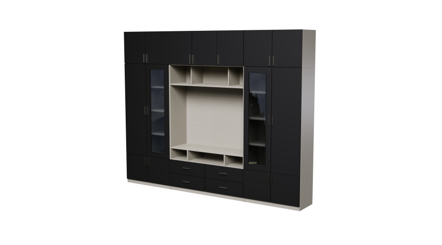 Das ist eine Wohnwand, die wirklich viel fasst – hinter eleganten, geschlossenen Fronten verstecken Sie alle Gegenstände, die nicht sichtbar sein sollen. Verglaste Vitrinen ermöglichen es Ihnen, Ihre Lieblingsdekoration effektvoll zu präsentieren, und der TV-Bereich wurde so durchdacht gestaltet, dass er bequem Fernseher und Multimedia-Geräte aufnimmt.