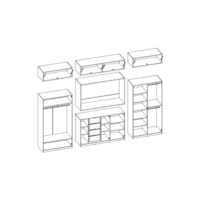 - verschließbaren Aufsätzen mit Einlegeböden über die gesamte Breite des Sets, wodurch die Gesamthöhe der Wohnwand bis zu 240 cm beträgt.