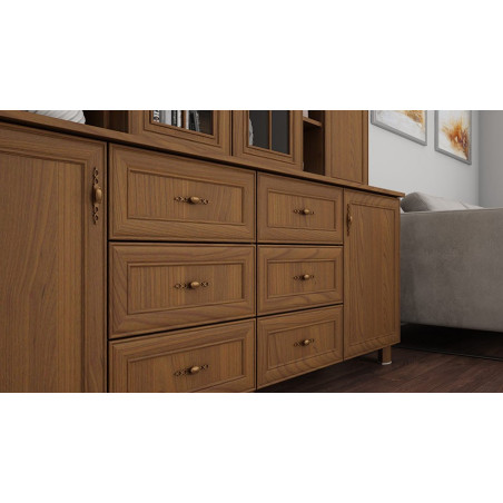 Additionally, the display cabinet has drawers that are ideal for storing smaller items such as tablecloths, napkins or other accessories. This way, everything is easily accessible and organized.