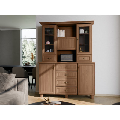 Thanks to the various elements used in the display cabinet, you will showcase your collections or books. It is also a perfect piece of furniture for an elegant dining room, allowing you to present dinnerware sets, decorative glassware, or porcelain. The display cabinet will also look beautiful in the kitchen or even in the study.
