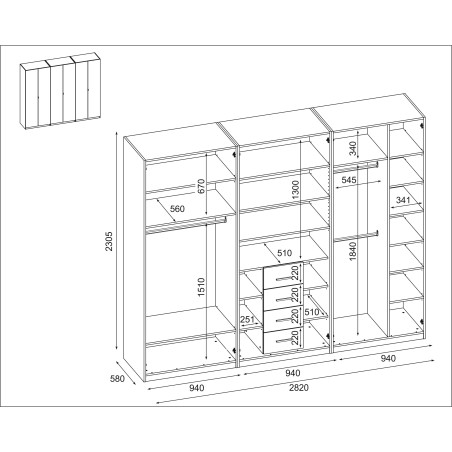 Wardrobe 282/230 - clothes rails, internal shelves, spacious external drawers