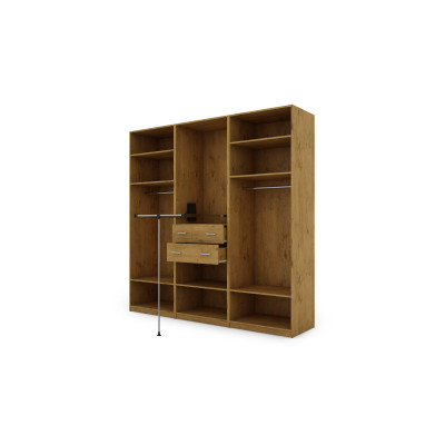 The stylish wardrobe with dimensions 240x240 cm in Lancelot oak finish is a combination of natural, warm surface with elegant, golden handles. This is a proposal for those who appreciate the classic look of furniture with a touch of luxury, which perfectly fits into glamour, modern or boho style arrangements.