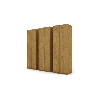 Thanks to its universal design and elegant finish, the 6-door wardrobe in Lancelot oak colour with golden handles addition works perfectly in bedrooms, walk-in closets, hallways or youth rooms. This is furniture that combines practicality with exceptional style.