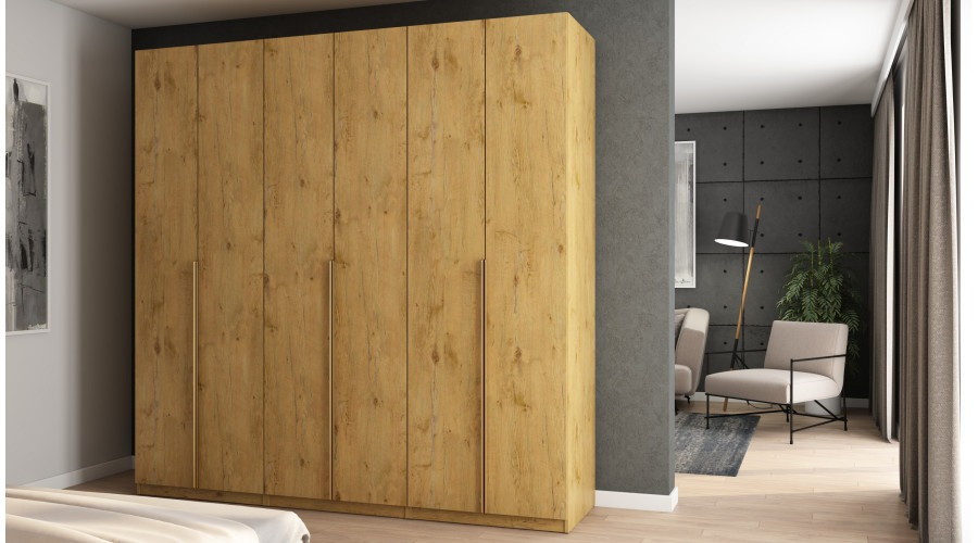 6-door wardrobe 240x240 cm – Lancelot oak with golden handles