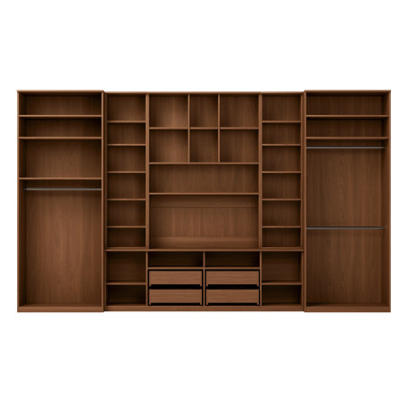 The SAWA wall unit is an extremely practical piece of furniture. It is very wide (3.90 m) and very tall (2.32 m)! It has deeper than standard extensions (0.36 m) as well as cabinets (0.55 m).