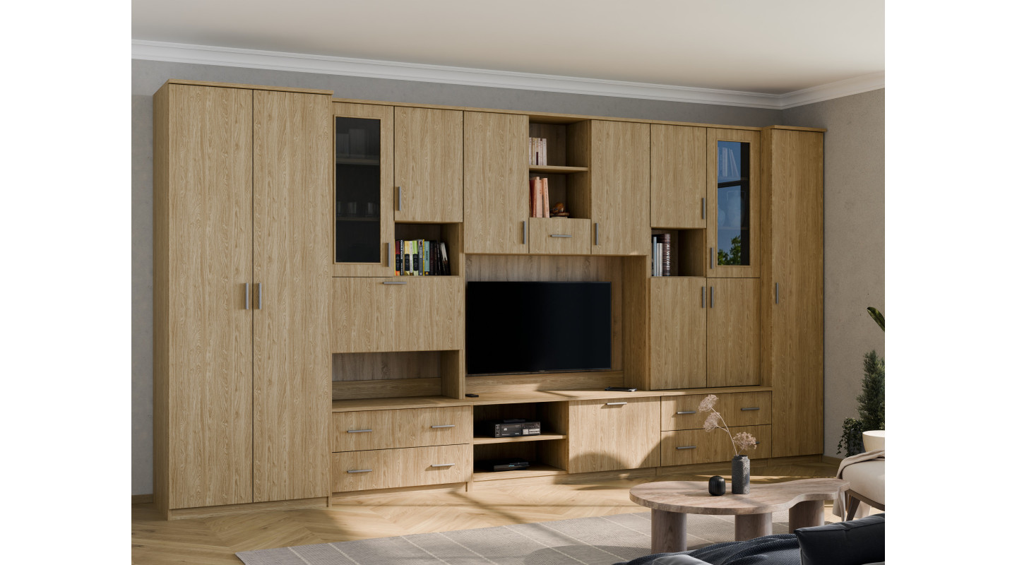 Spacious Wall Unit, Width 400 cm, Wardrobes, Cabinets, RTV, Shelves, Bar - CYKLON