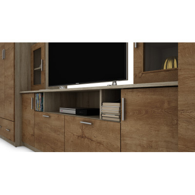 - TV cabinet with a large niche for the television and bottom section with flaps, doors and niches with shelves.